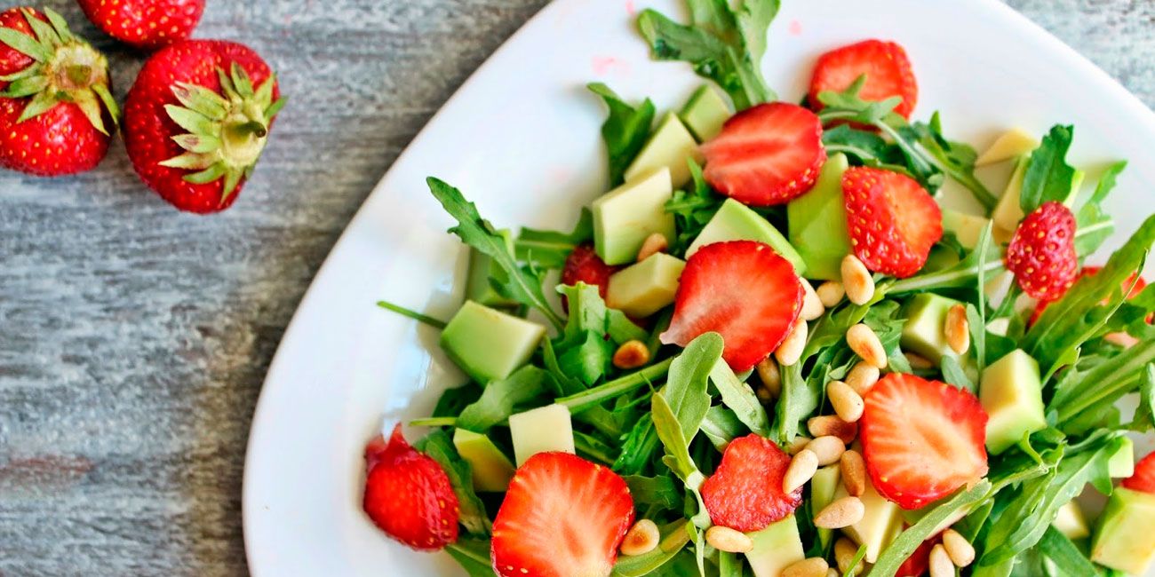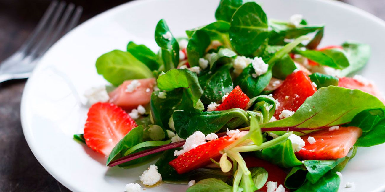 Салат с куриной грудкой, клубникой и шпинатом